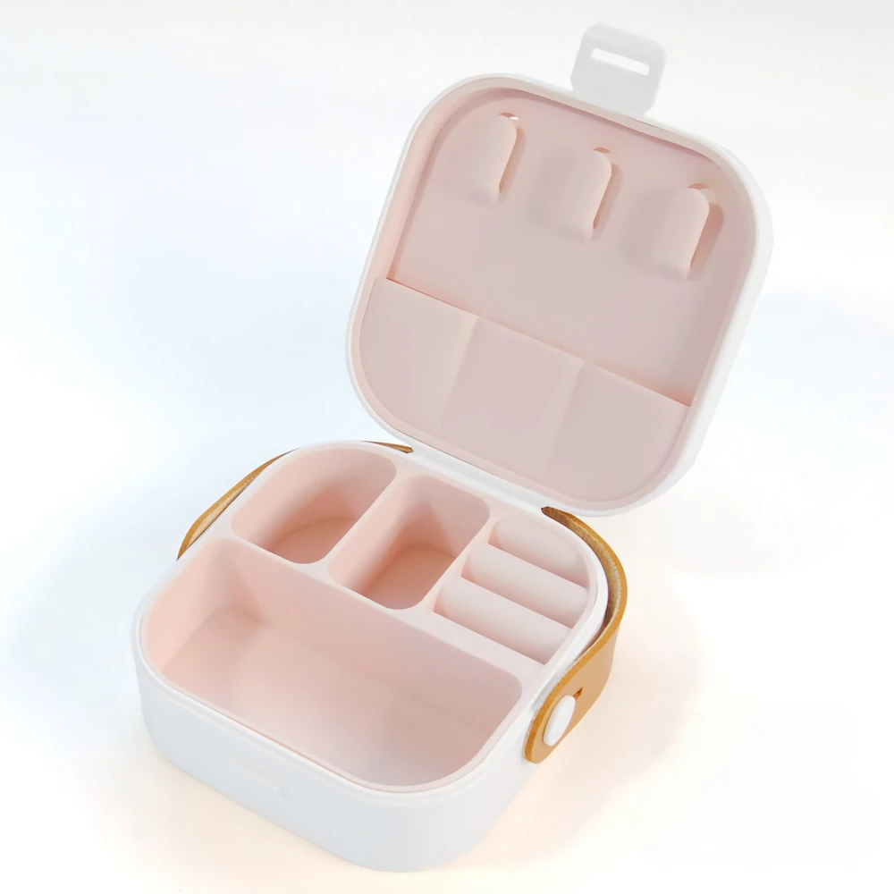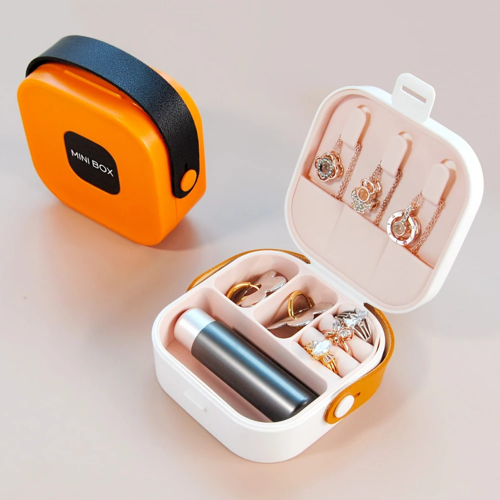 (Su tamaño mini lo hace ideal para llevarlo en tu maleta, bolso de mano o incluso en un bolso pequeño. No ocupa espacio, pero mantiene tus joyas perfectamente organizadas).