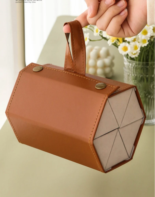 (Cuenta con un diseño hexagonal, 5 divisiones y una manija. Ideal para usar en viajes y proteger tus lentes).