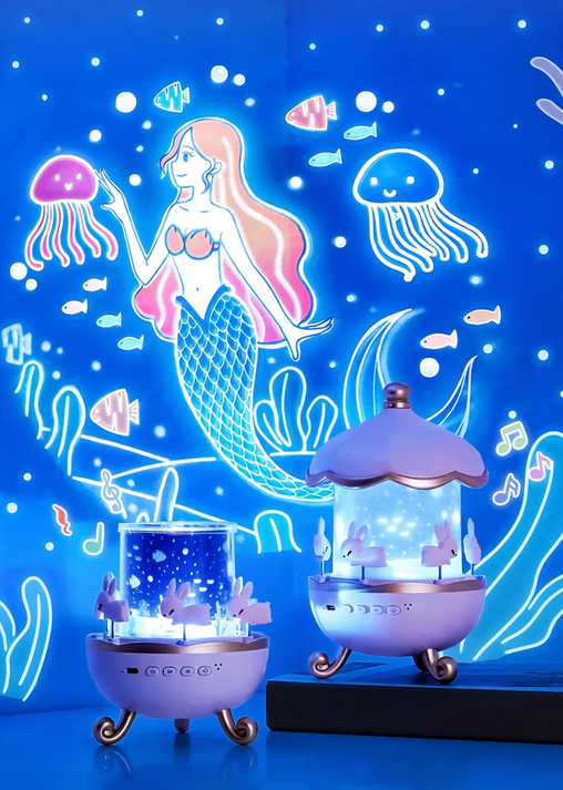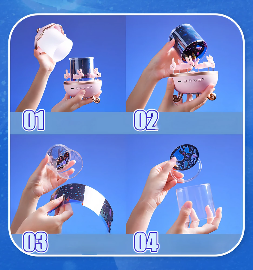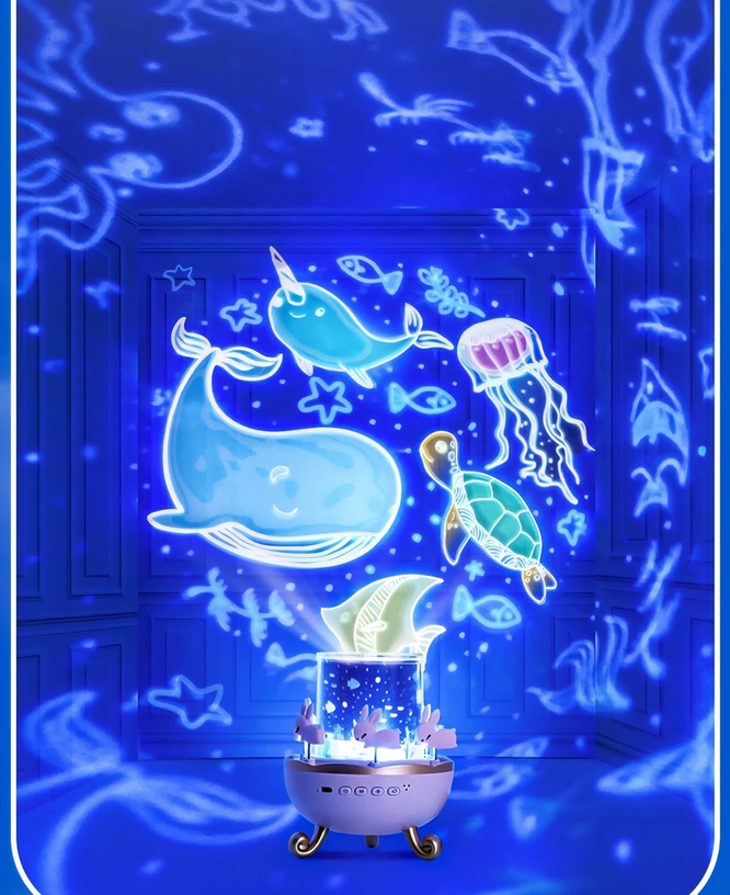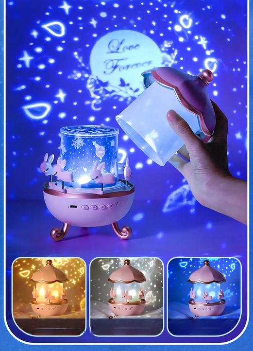 (Equipada con una luz LED de bajo consumo, es segura para la vista, incluso para los más pequeños. Trae 6 láminas de velador con diferentes formas y figuras como mundo acuatico, fuego artificiales, planetas, etc. Además, es completamente inalámbrica y se carga fácilmente a través de USB, lo que la hace ideal para viajes y uso en diferentes habitaciones. Cuenta con Rotación de 360 grados. Para proyectar sobre la pared debe quitarle la tapa principal).