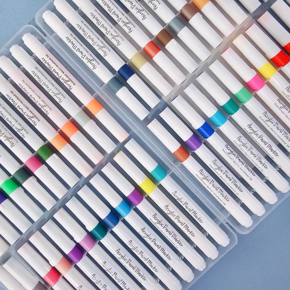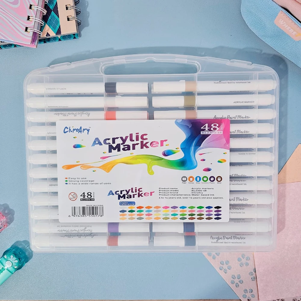 (Set x 48U. tinta acrílica ideal para pintar en vidrio, pared o superficie oscuras como cartulina, etc. Punta tipo pincel ideal para pintar o hacer lettering).