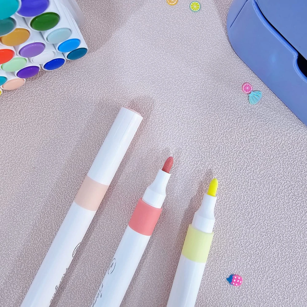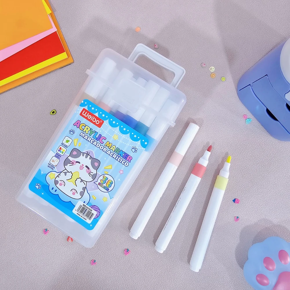 (Contienen pintura acrílica a base de agua, lo que los hace no tóxicos y fáciles de limpiar. Se pueden usar en una variedad de superficies, como papel, madera, tela, vidrio y cerámica).