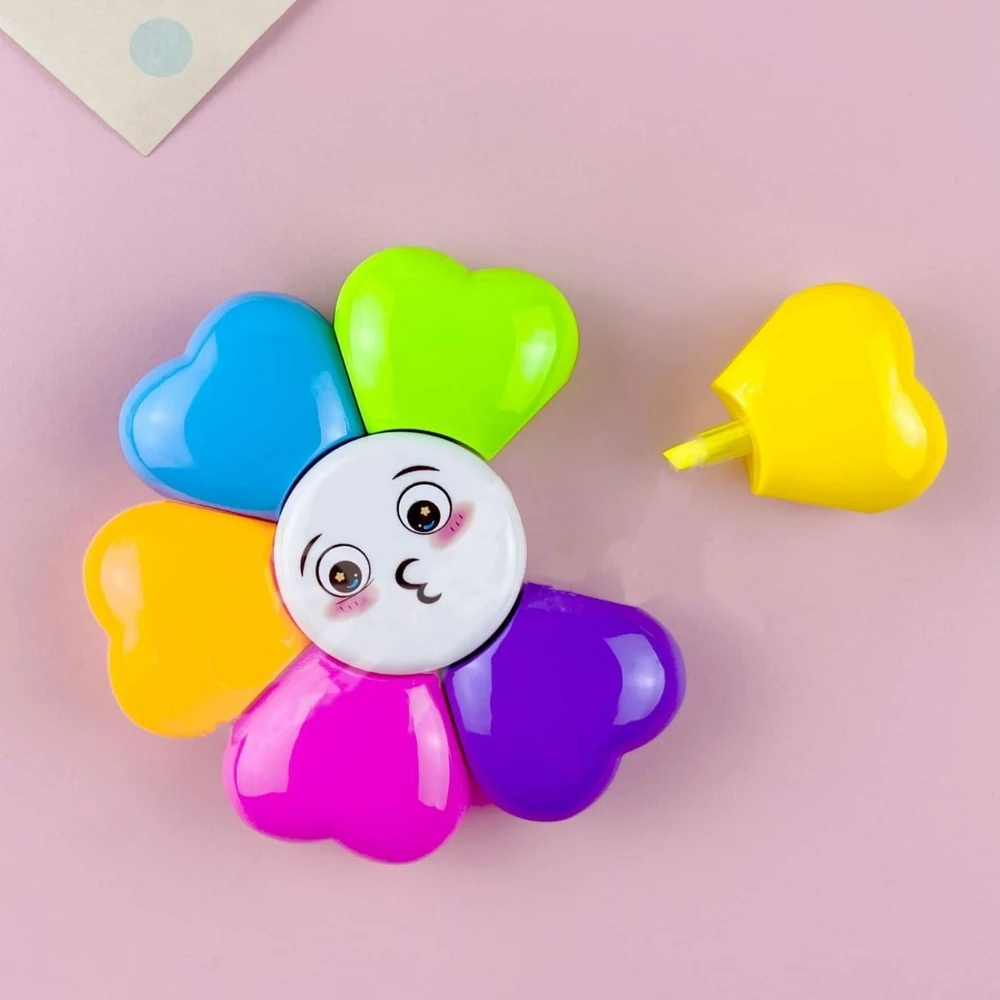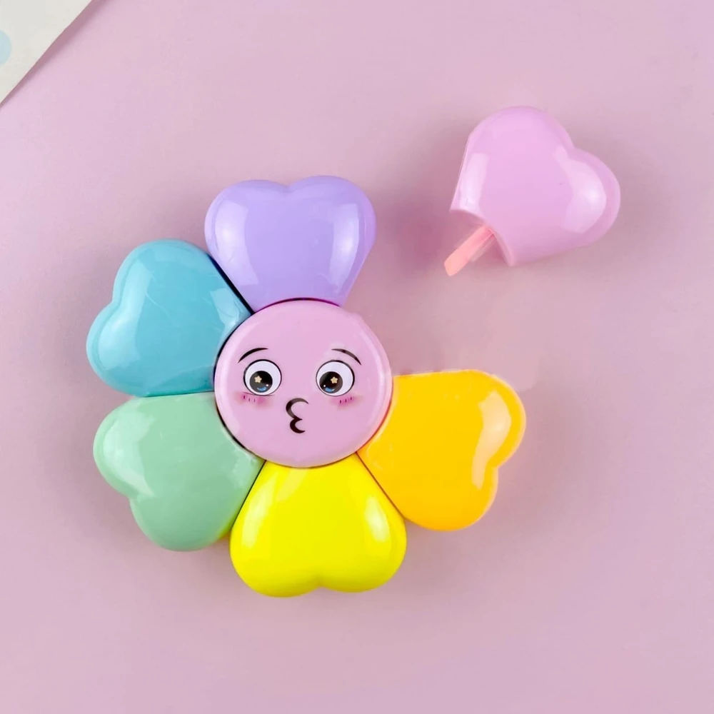 (Resaltador x 6U. en forma de flor, vienen dos modelos con colores diferentes . Ideal tener todo en uno sin que te ocupe mucho espacio en la cartuchera).