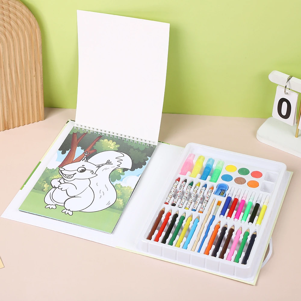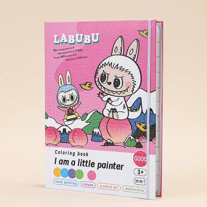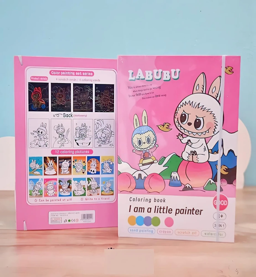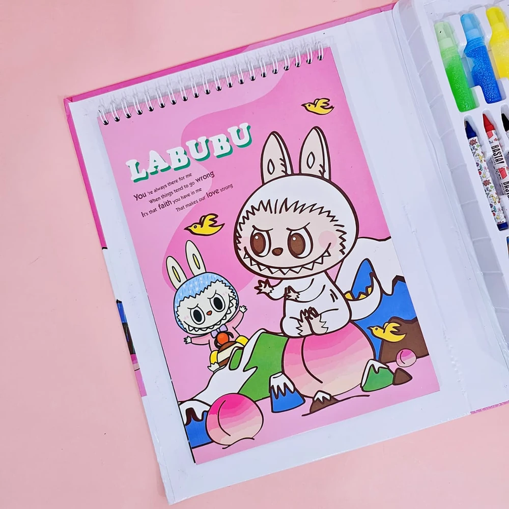 (Set de arte ideal para regalar, vienen con 12 diseños surtidos de Labubu para colorear. el Set incluye: 4 glitter en gel, 6 crayones de colores, 6 temperas, 6 fibras colores surtidos, 6 lápices de colores, 1 pincel, un sacapuntas y un palito de naranjo). (Ut28)