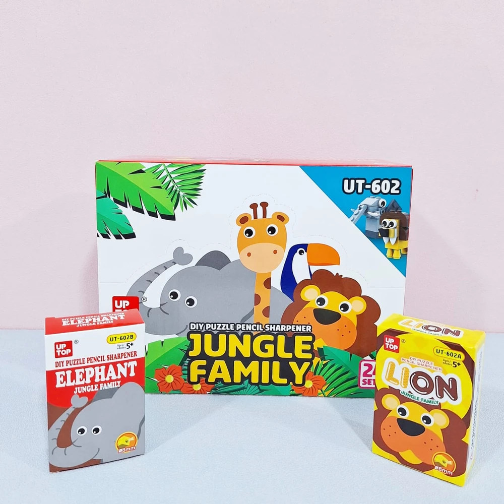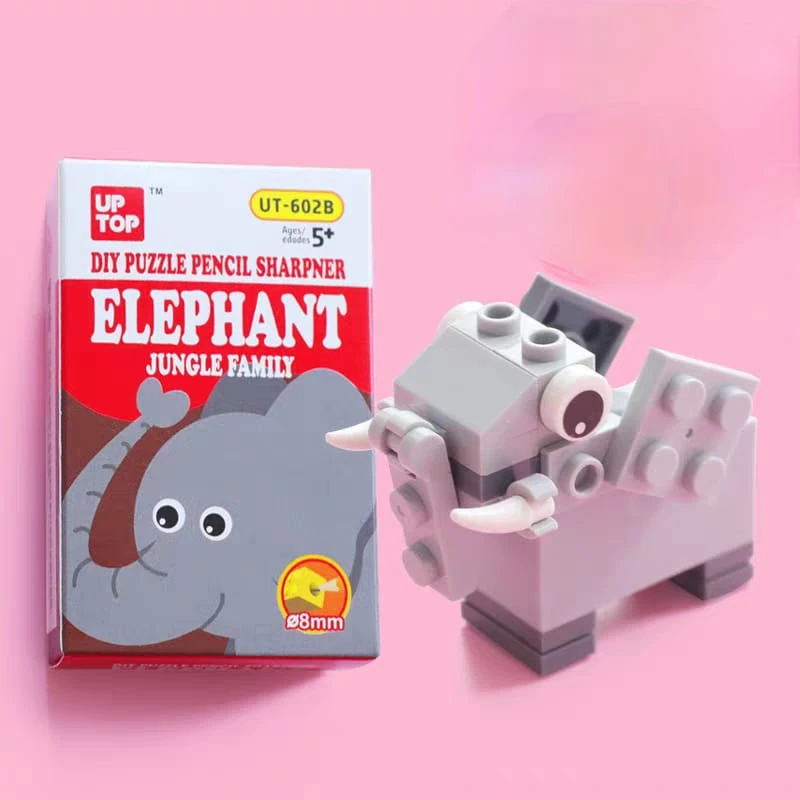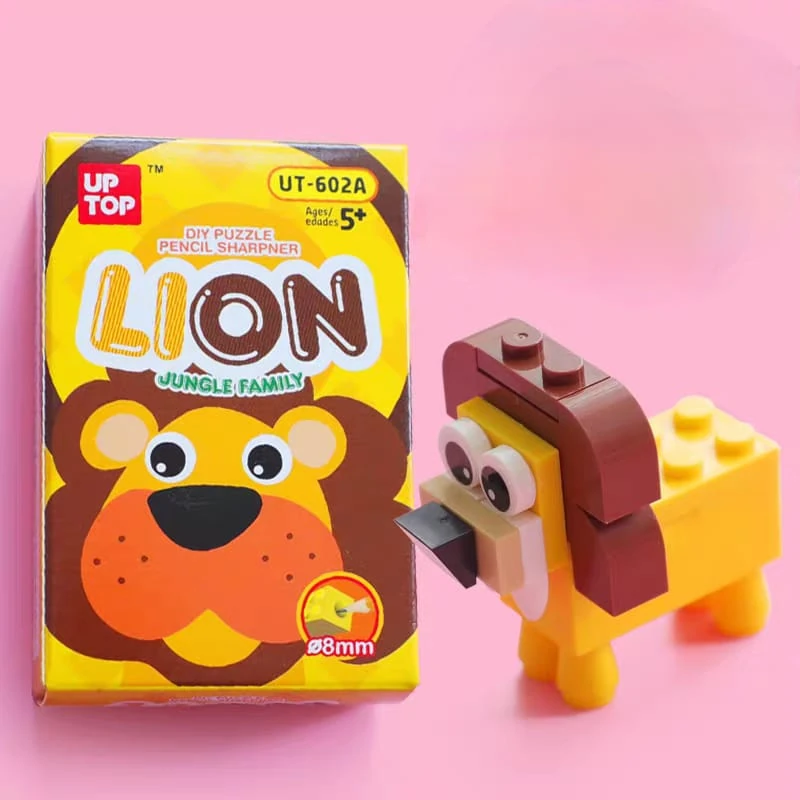 (Caja con 24 unidades de sacapuntas con forma de elefante y leon tipo Legos para armar).