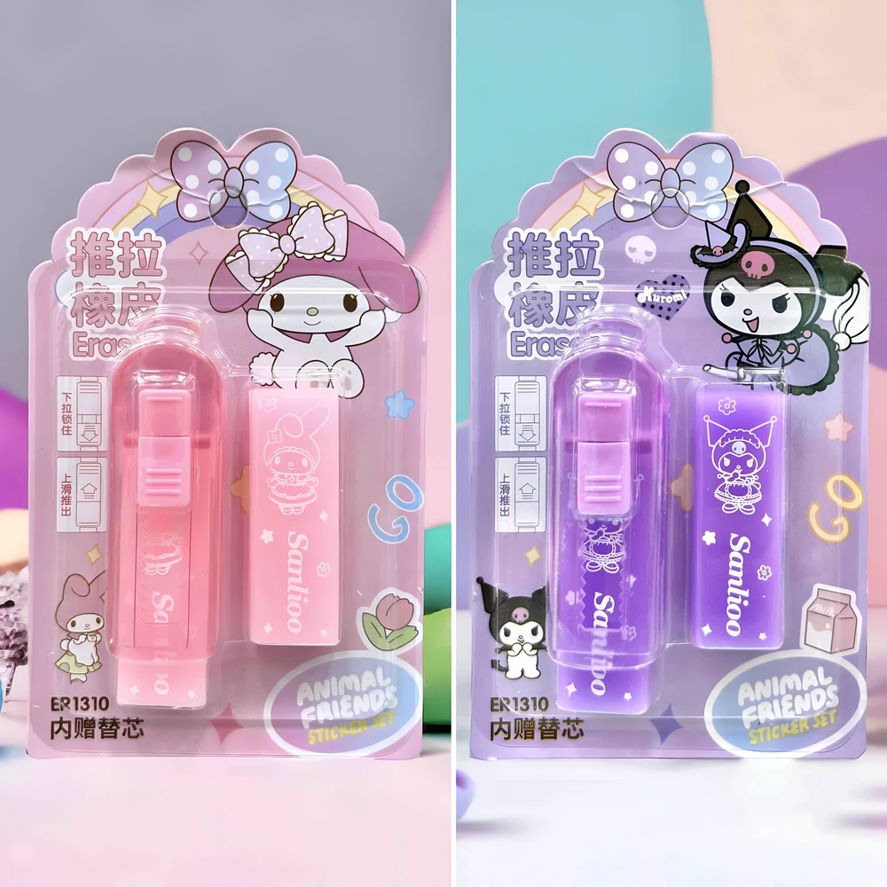 (Este borrador retráctil contiene un repuesto y viene en dos modelos diferentes de sanrio: kuromi y cinnamoroll. Es fácil de usar y no mancha la hoja).