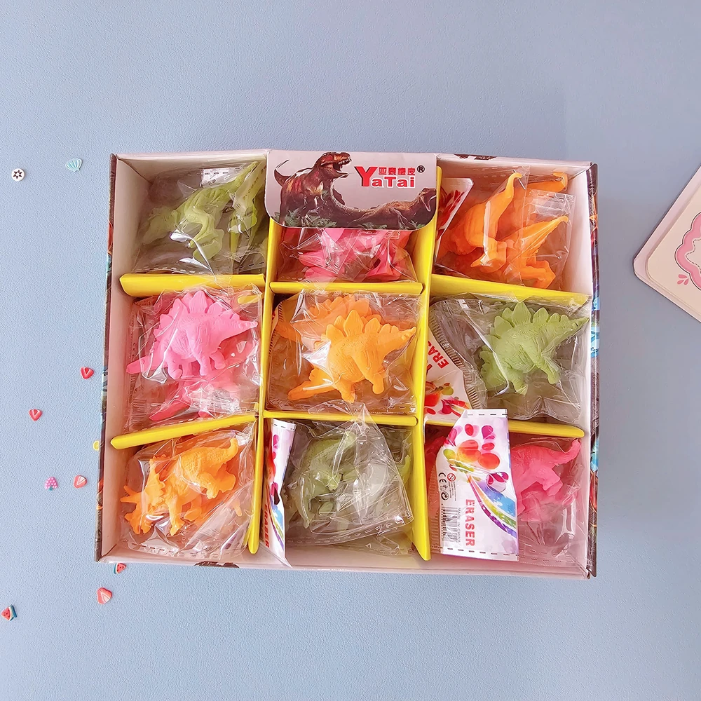 (Borradores con diseños de dinosaurio. Vienen 3 modelos diferentes y cada uno de tres colores. Ideal para regalar o usar en el colegio).