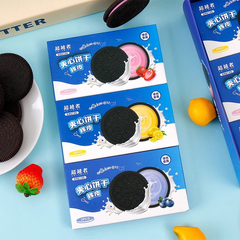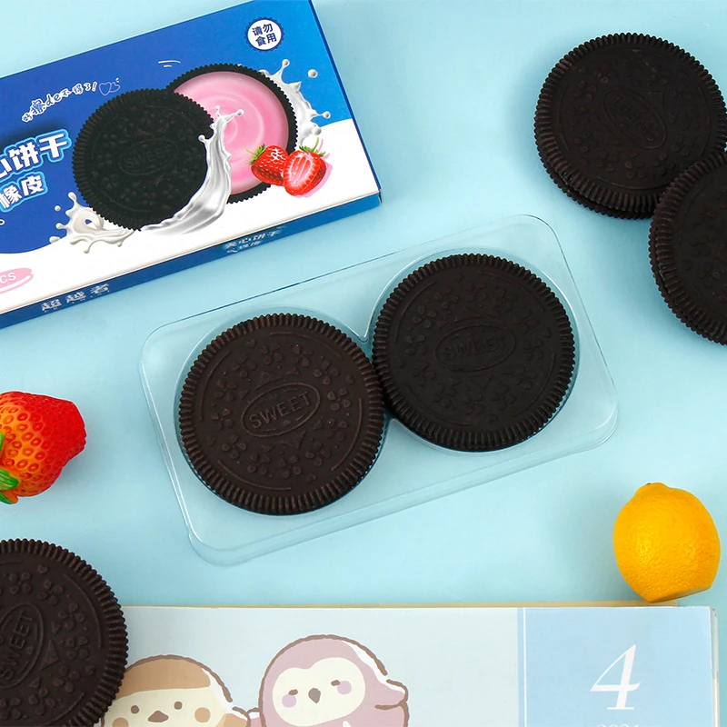 (Goma de borrar en forma de masitas de chocolate. Viene en caja x 18 set y cada set contiene dos unidades).