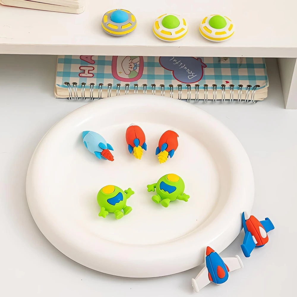 (Goma para borrar con diseño en forma de naves espaciales, ovnis, astronautas y extraterrestres. Vienen en caja x 36 unidades).