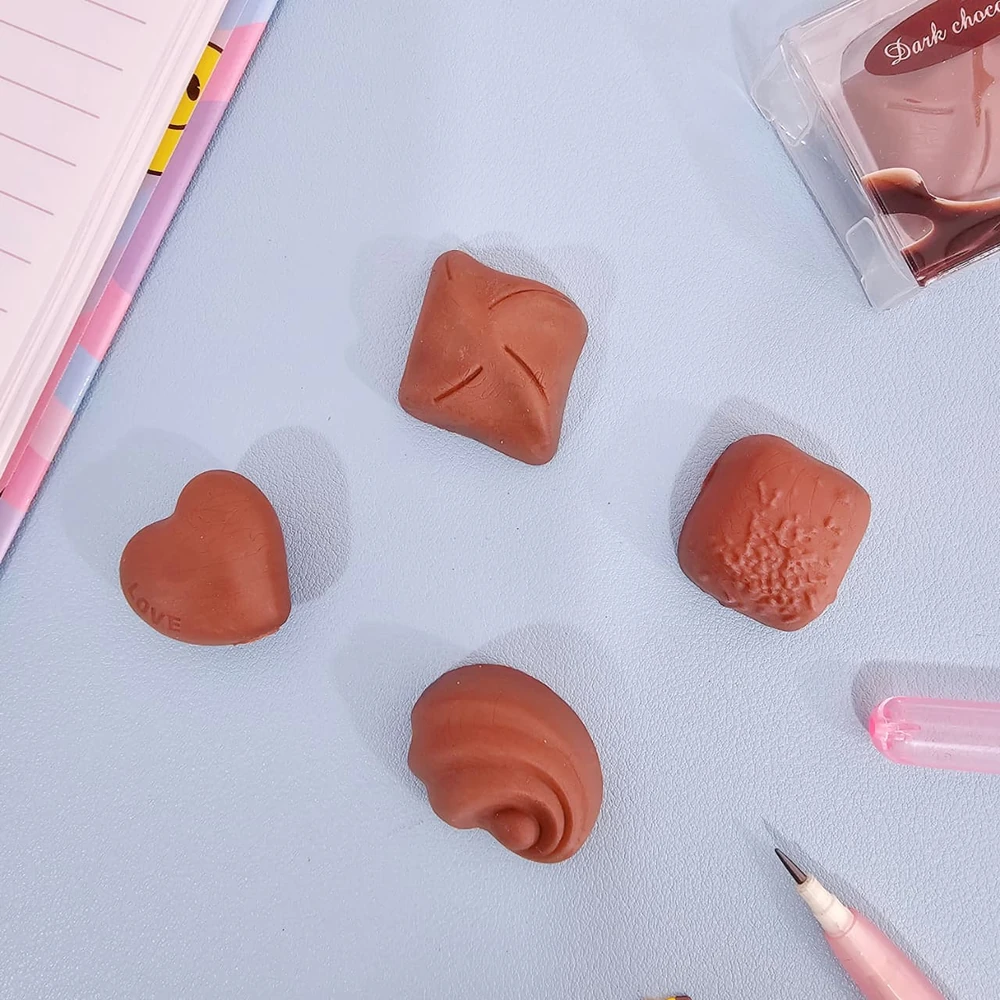 (Goma de borrar en forma de bombones de chocolate. Viene en Caja x 30 Set, cada set contiene 4 unidades de gomas).