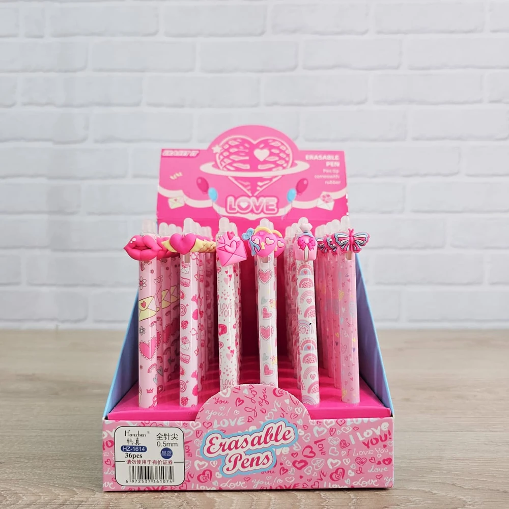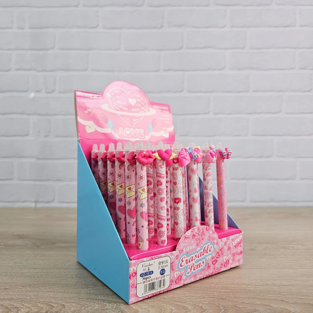 (Birome Retractil con diferentes modelos en tonos rosados . Ideales para regalar o llevar al colegio).
