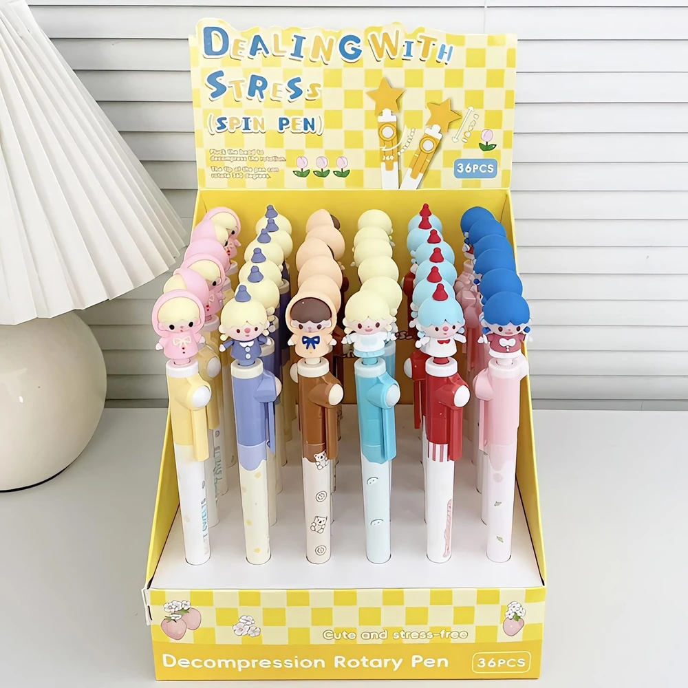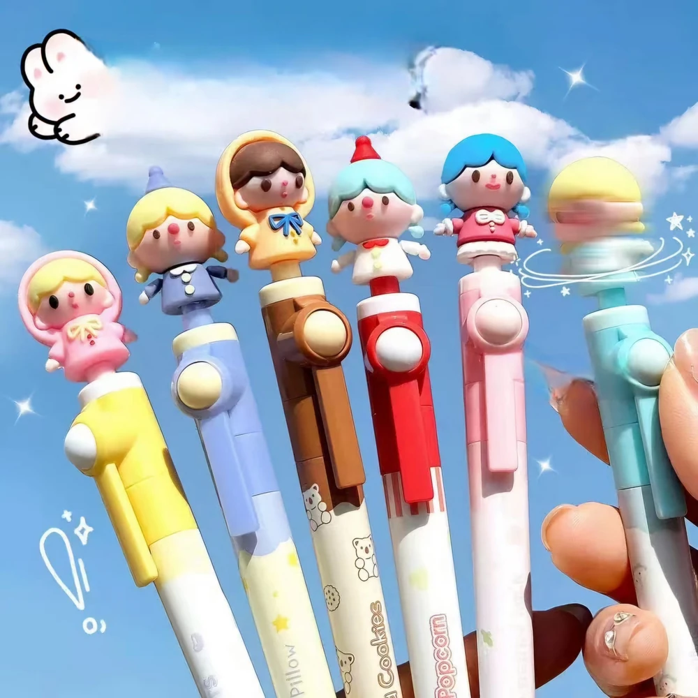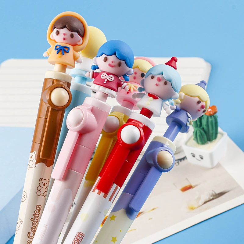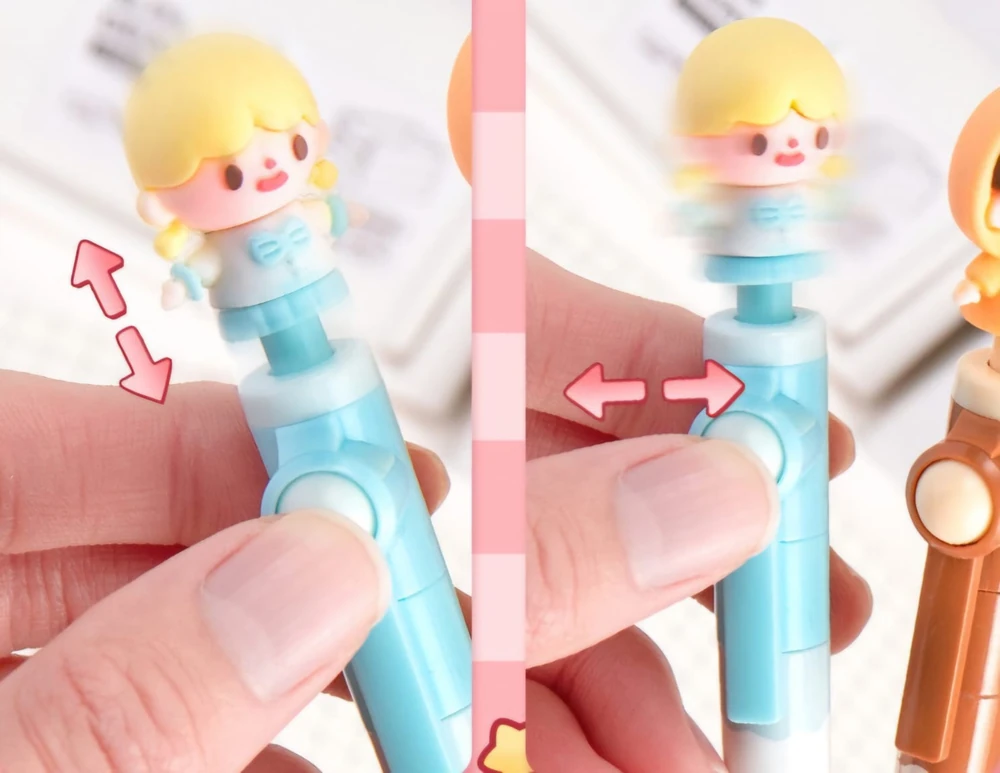 (Lapiceras con tinta negra, cuentan con con divertido diseño de muñecas, el elemento en la parte superior es un juguete antiestrés permitiendo al usuario manipularlo para aliviar la tensión o simplemente por diversión. Su diseño atractivo y divertido los hace ideales como obsequio o para coleccionistas de artículos de papelería temáticos).