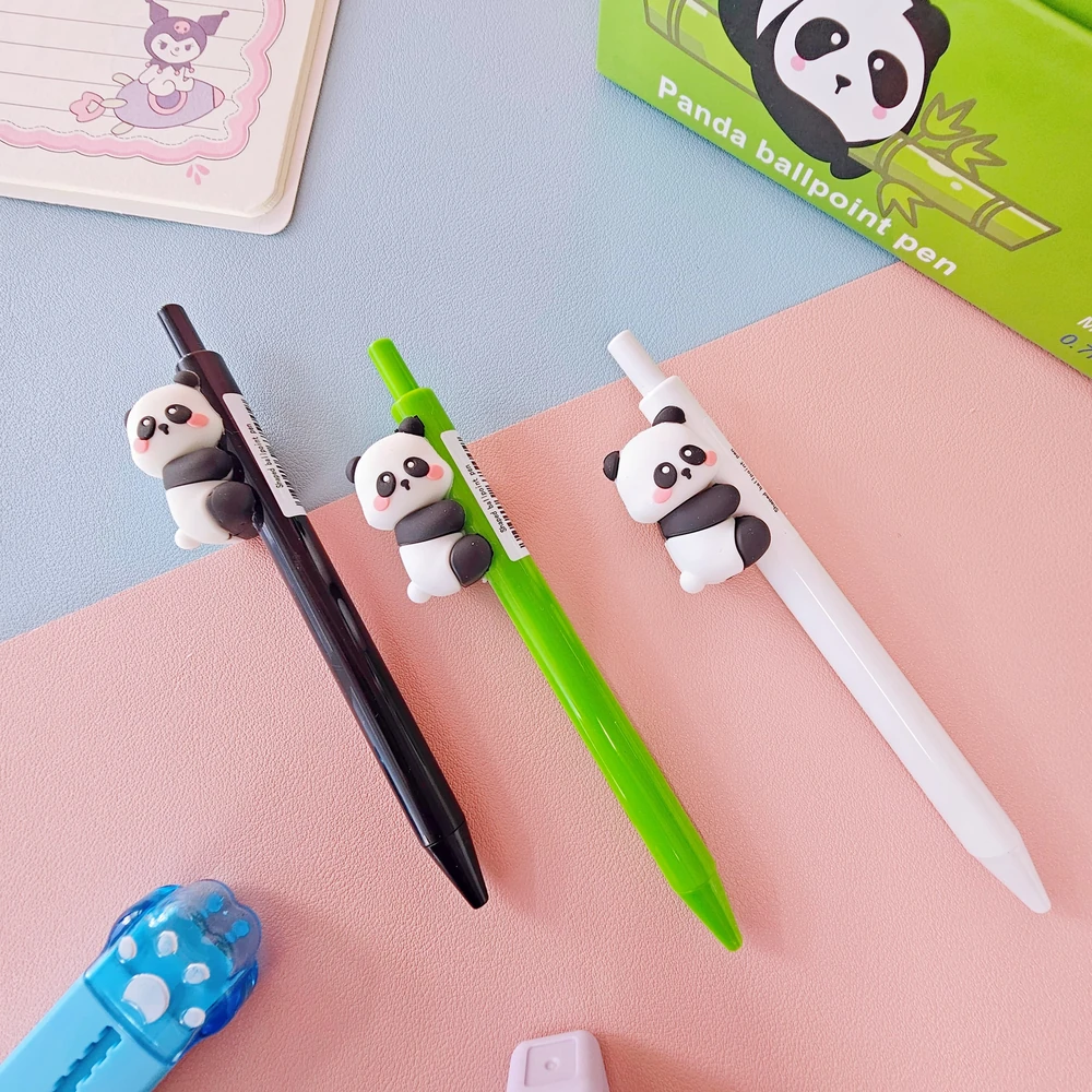 (Cuenta con un mecanismo retráctil, tinta negra, espesor de 0.7mm y un accesorio de panda. Vienen 3 modelos diferentes. Ideal para uso escolar y regalar).