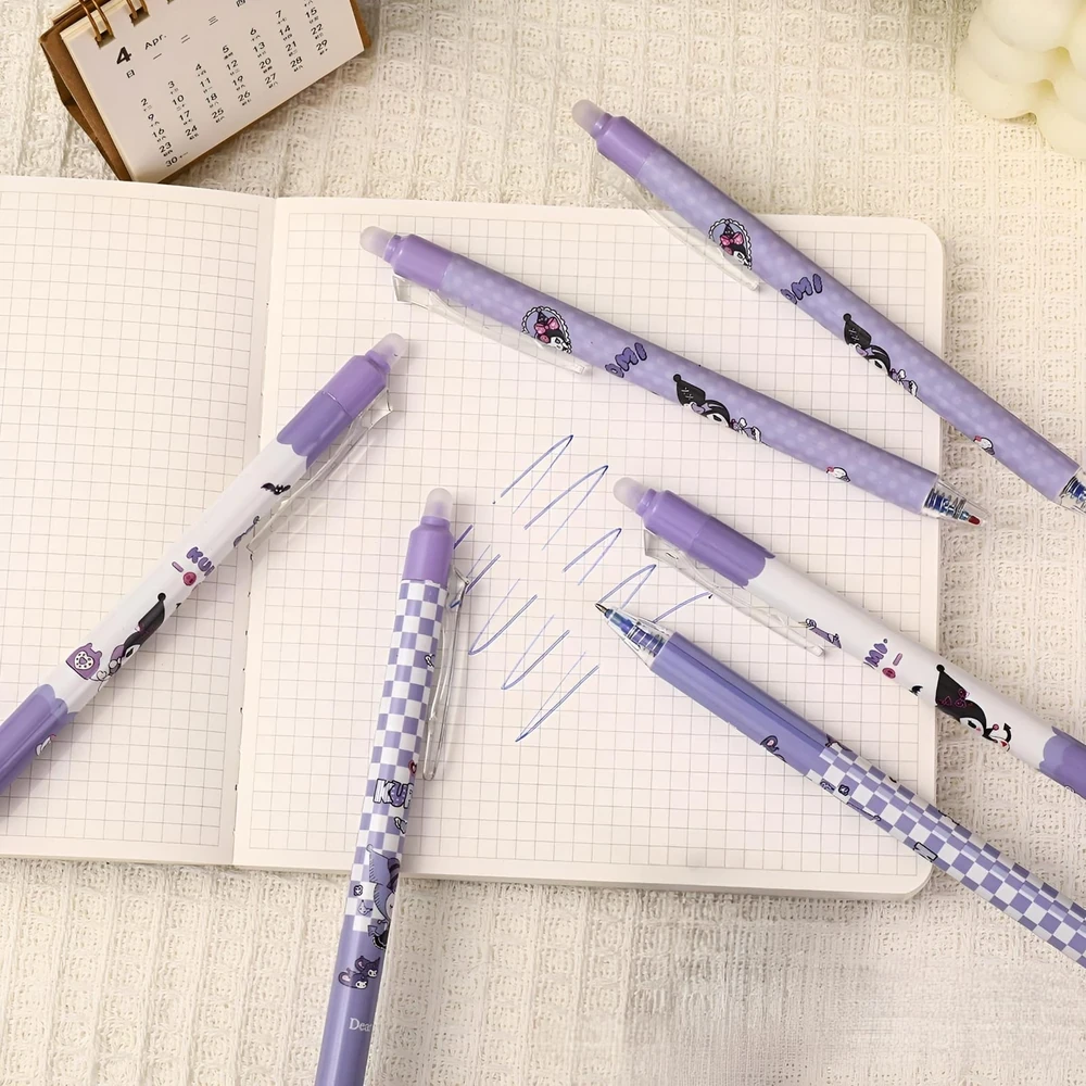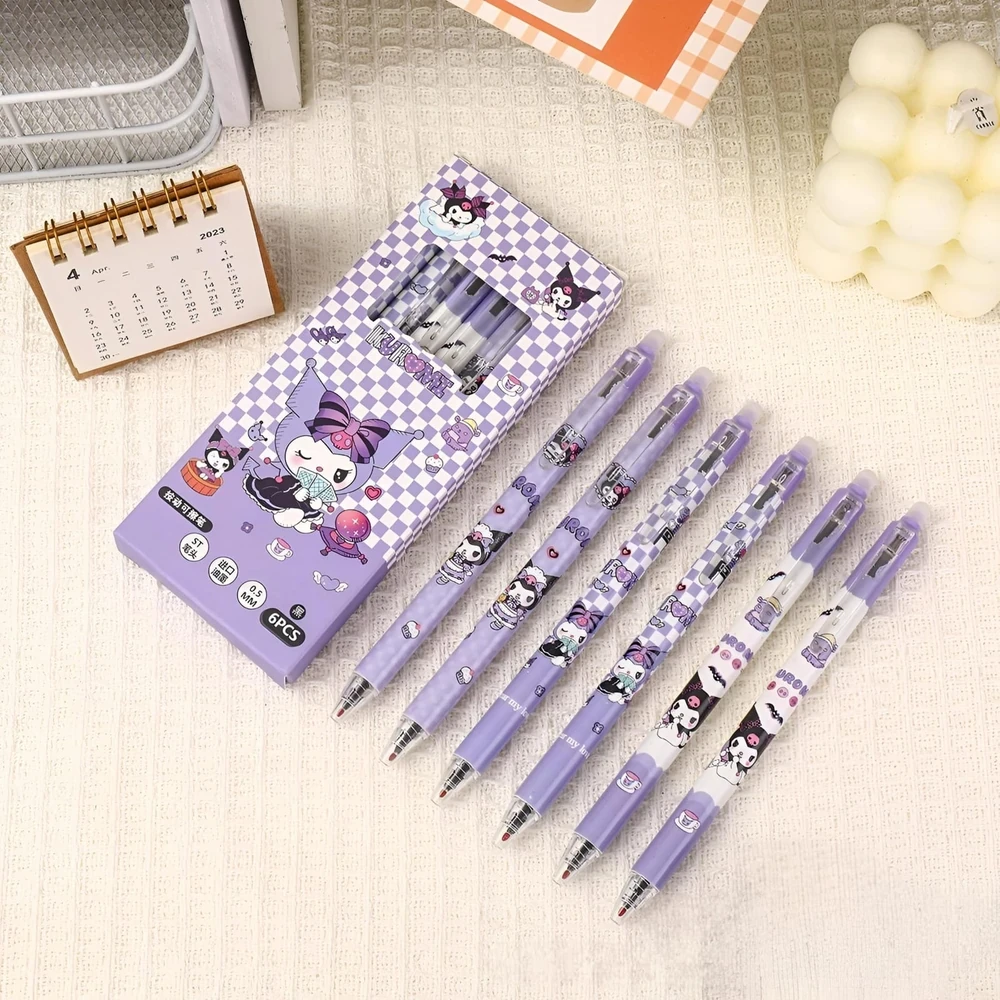 (Cuenta con 6 biromes de color negro con mecanismo retráctil con diseño de "Kuromi" y un gancho. Ideal para regalar).