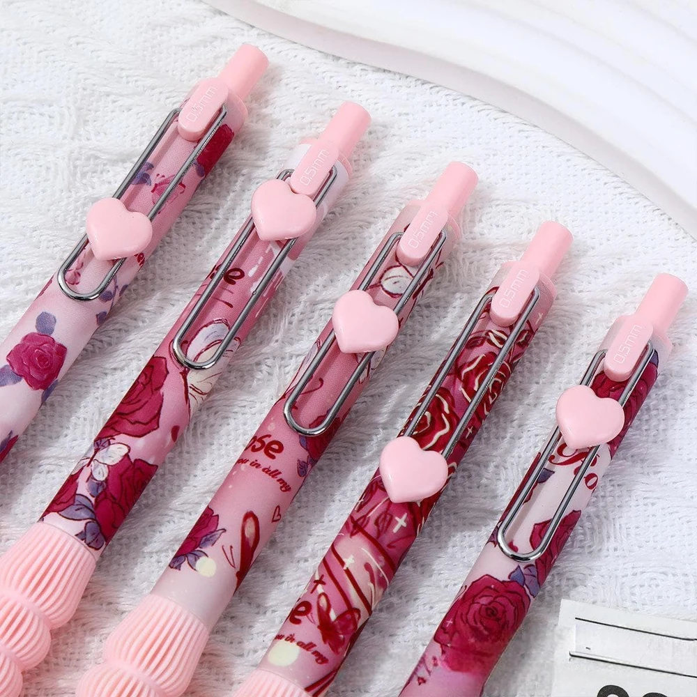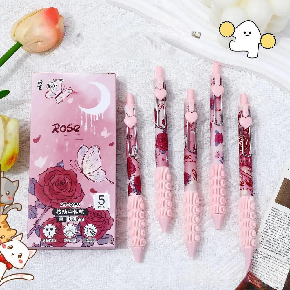 (Set x 5U. de Biromes, disponible en color rosa con un hermoso diseño de flores y mariposas, cada birome cuenta con un gancho para poder colocarla donde desees. Tinta negra).
