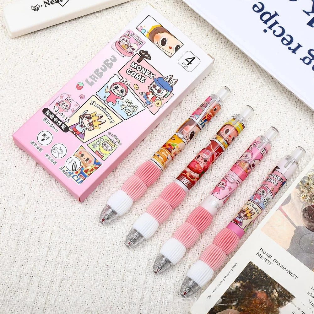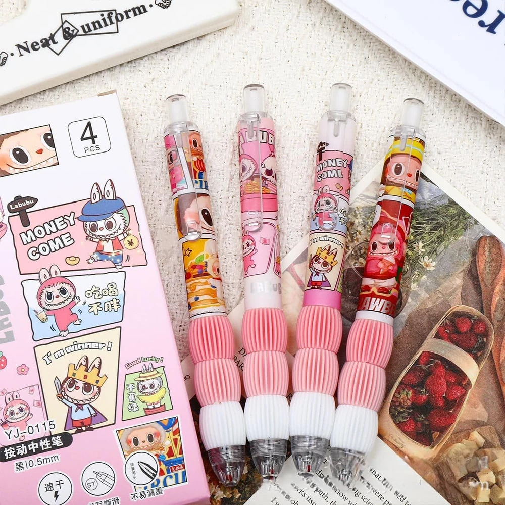 (Cuenta con 4 biromes de tinta color negro con mecanismo retráctil con diseño de "Labubu" y un gancho. Ideal para regalar).