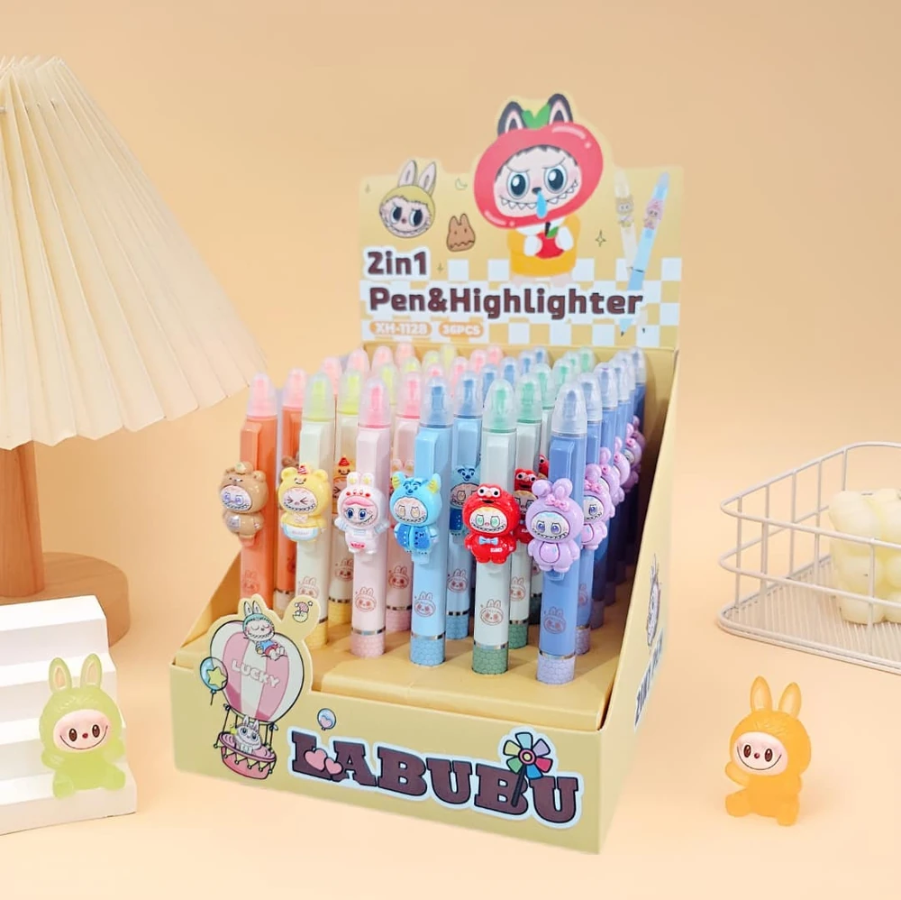 (Lapicera con resaltador con un tierno diseño de la "Labubu". Vienen 6 colores diferentes. Ideal para regalar).