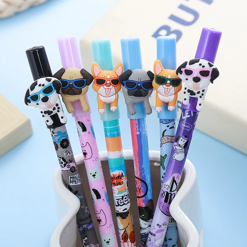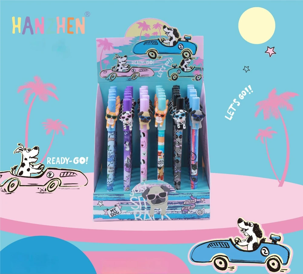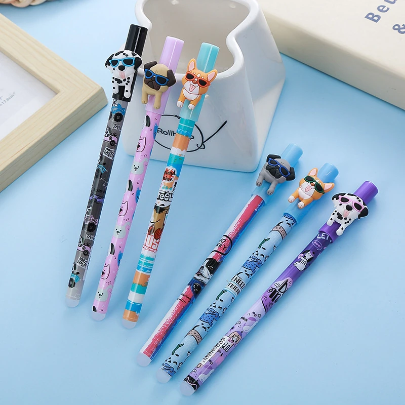 (Lapiceras con tinta de gel azul borrable que desaparece con la fricción. Presentan diseños inspirados en Perritos, Son ideales para quienes buscan una opción de escritura que permita correcciones limpias sin usar corrector. La punta de goma en el extremo borra la tinta sensible al calor sin dañar el papel). (Ut22)