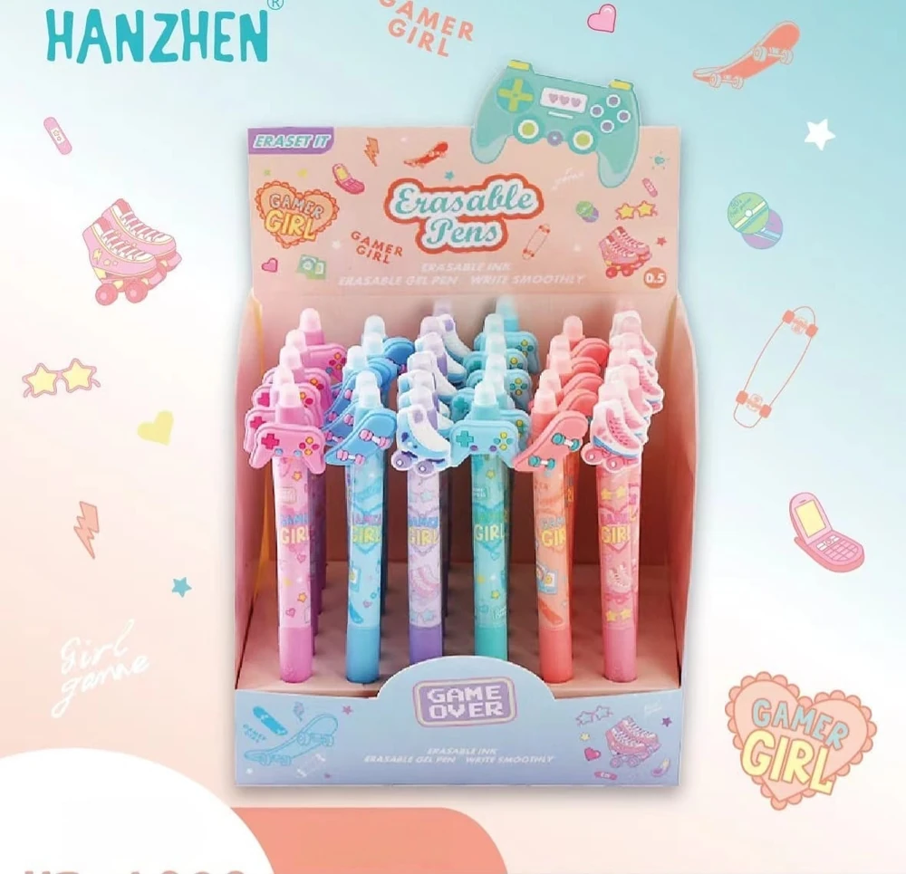 (Lapiceras con tinta de gel borrable que desaparece con la fricción. Son ideales para quienes buscan una opción de escritura que permita correcciones limpias sin usar corrector. La punta de goma en el extremo borra la tinta sensible al calor sin dañar el papel).