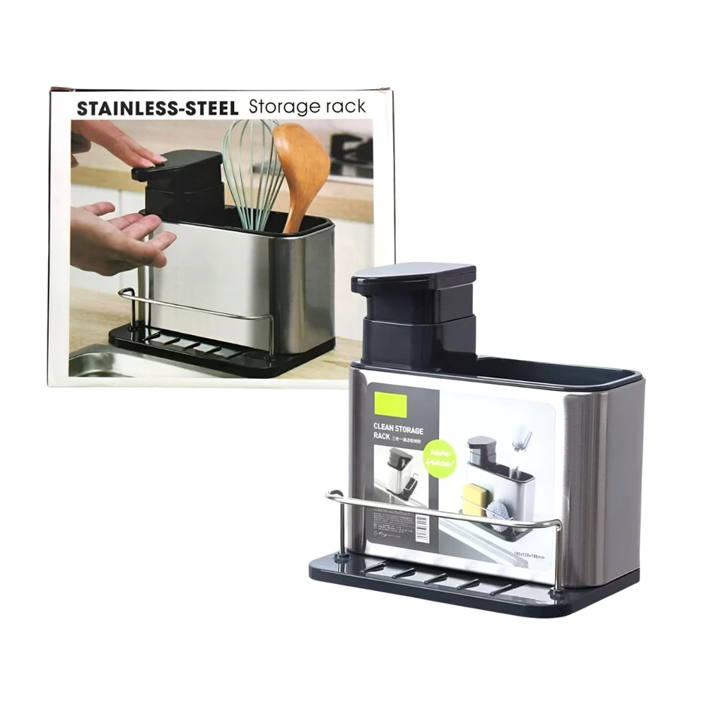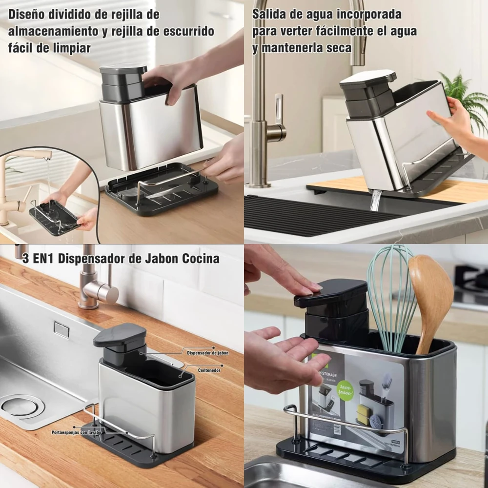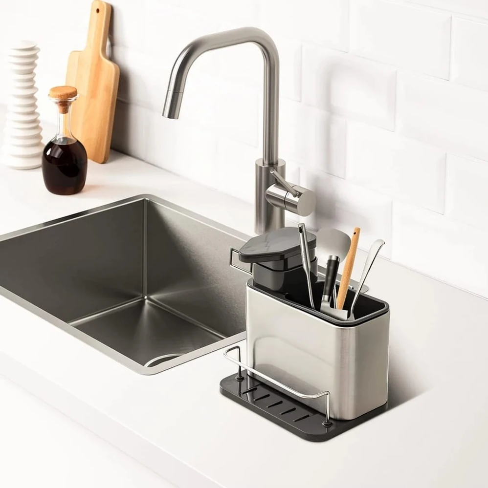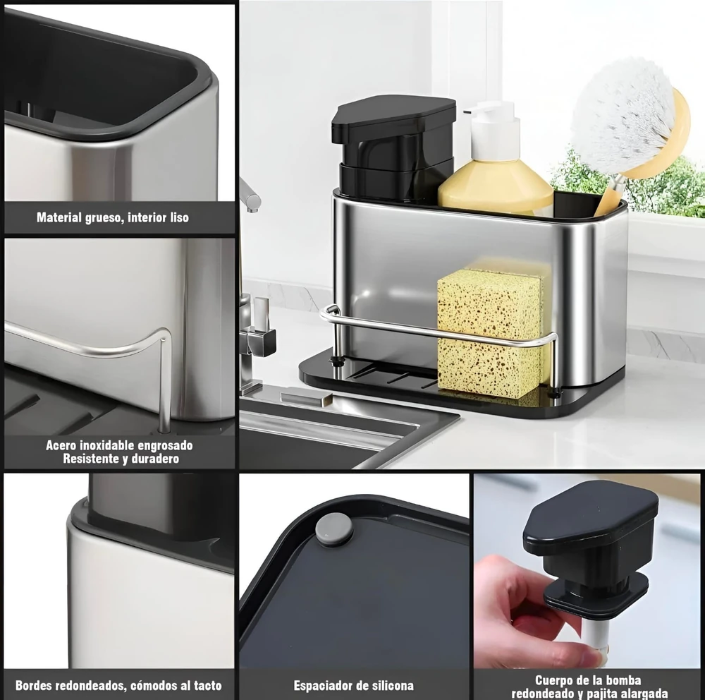 (Cuenta con un contenedor para colocar detergente y un compartimento lateral donde podrás guardar tus esponjas o utensilios. Definitivamente mantendrá tu cocina limpia y ordenada).