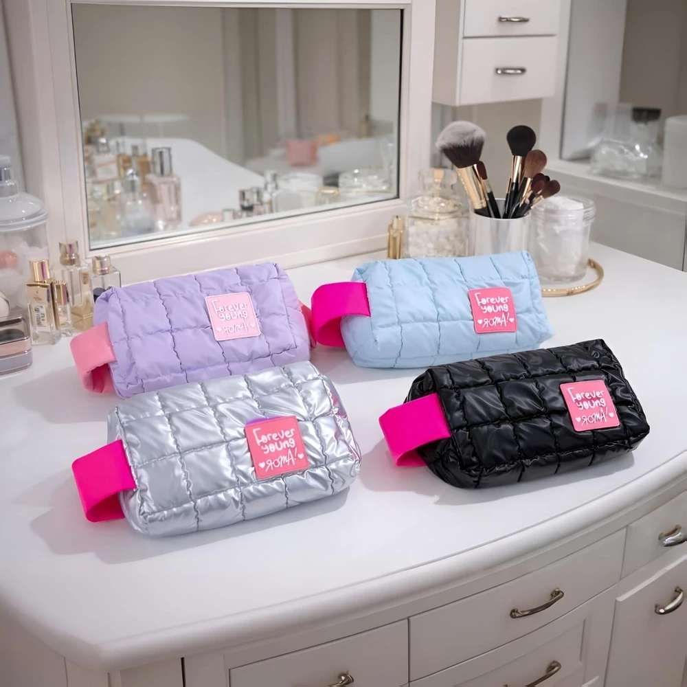 (Diseño tipo puffer con colores neones. Ideal para organizar tus productos. Su diseño permite transportarlos fácilmente).